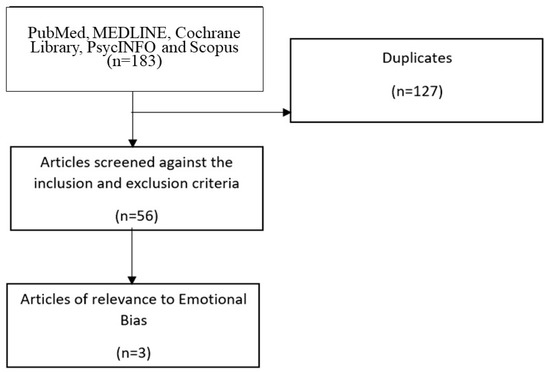 To identify studies that have been published on emotional biases, articles were identified using a search through the following databases: PubMed, MEDLINE (Ovid), Cochrane Library, PsycINFO and Scopus. A library information specialist from the Lee Kong Chian School of Medicine, Nanyang Technological University Singapore was involved in the refinement of the search strategy. The following search terminologies were used: “cognitive bias modification”, “attention bias modification”, “interpretation bias modification”, “affect processing bias”, “emotional bias” and “ADHD” or “attention deficit disorder”, “attention deficit disorder with hyperactivity”, or “attention deficit hyperactivity disorder”. The search strategy was modified to suit the different databases. The databases were searched from inception through to 18 February 2020. With this, a total of 183 citations were identified, of which 127 were duplicates. In this article, we have decided to review only articles that are in English and if they included (a) children and adolescents with ADHD and (b) mentioned how emotional or affective biases are being assessed or modified. Figure 1 provides an overview of the selection of the studies.