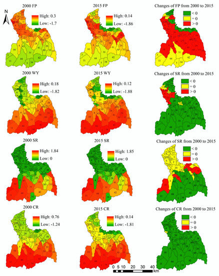 - Li, J.; Jiang, H.; Bai, Y.; Alatalo, J.M.; Li, X.; Jiang, H.; Liu, G.; Xu, J. Indicators for spatial–temporal comparisons of ecosystem service status between regions: A case study of the Taihu River Basin, China. Ecol. Indic. 2016, 60, 1008–1016. [Google Scholar] [CrossRef]
