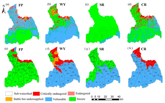 3.4.2. The Supply–Demand Risks in the Sub-Watershed Scale