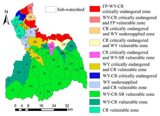 3.3.2. The Supply–Demand Matching of Sub-Watershed Scale