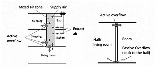 Passive House Ventilation concept with active overflow. Source: Passive House Institute (PHI) [19].
