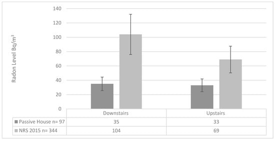- The radon distribution levels between upstairs and downstairs were analysed in in the 97 certified passive house buildings, which are all two storey domestic dwellings.