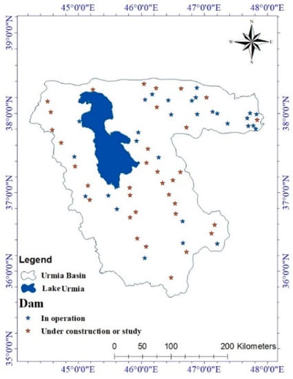 A remarkable decrease in rainfall and rivers’ water, especially in warmer months, have caused challenging problems for farmers to supply water for irrigation purposes. Therefore, damming on the main rivers to store water during rainy seasons was the only solution adopted by decision makers, which has a great role in subsiding the lake water level. Analysis of the data obtained from the IWRMC clearly shows the number of dams in operation and under construction, implying a total number of 29 active dams in the basin and 34 dams under construction (Figure 9). The latter can further cause the water level decline in the near future.