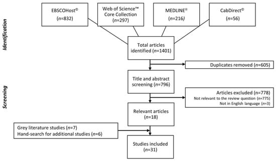 - Tricco, A.C.; Lillie, E.; Zarin, W.; O’Brein, K.K.; Colquhoun, H.; Levac, D.; Moher, D.; Peters, M.D.J.; Horsley, T.; Weeks, L.; et al. PRISMA extension for scoping reviews (PRISMA-ScR): Checklist and explanation. Ann. Intern. Med. 2018, 169, 467–473. [Google Scholar] [CrossRef]