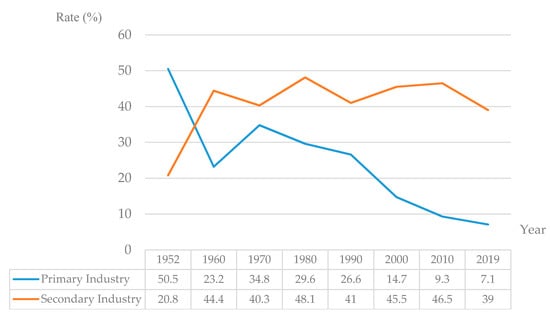 First, the relatively slow urbanization compared to the pace of industrialization inhibits cities from providing a conducive environment for the migration of the entire family rather than just the migrant workers. China’s modernization with industrialization began in 1949. To ensure the smooth progress of modernization with industrialization as the core, the state established certain urban preferential policies with the household registration system as the core content. To begin, these are intended to build a good social order, and then gradually evolve into an important means of social control, resource allocation, and benefit redistribution, to prevent the large-scale flow of rural labor force. This leads to the stagnation of the movement of rural labor force and the process of urbanization. The rate of urbanization has gradually increased from 10.64% in 1949 to 17.92% in 1978. After 1949, as the country vigorously promoted the household registration system and relaxed the requirements of the household registration migration policy, large-scale rural labor began to relocate to cities and towns, and the urbanization rate increased significantly. In spite of this, a very large gap still exists when compared with the long-term industrialization rate of about 45% (