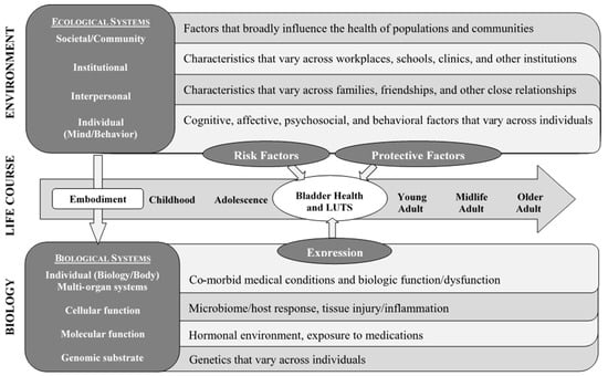- Brady, S.S.; Berry, A.; Camenga, D.R.; Fitzgerald, C.M.; Gahagan, S.; Hardacker, C.T.; Harlow, B.L.; Hebert-Beirne, J.; Lacoursiere, D.Y.; Lewis, J.B.; et al. Applying concepts of life course theory and life course epidemiology to the study of bladder health and lower urinary tract symptoms among girls and women. Neurourol. Urodyn. 2020, 39, 1185–1202. [Google Scholar] [CrossRef] [PubMed]