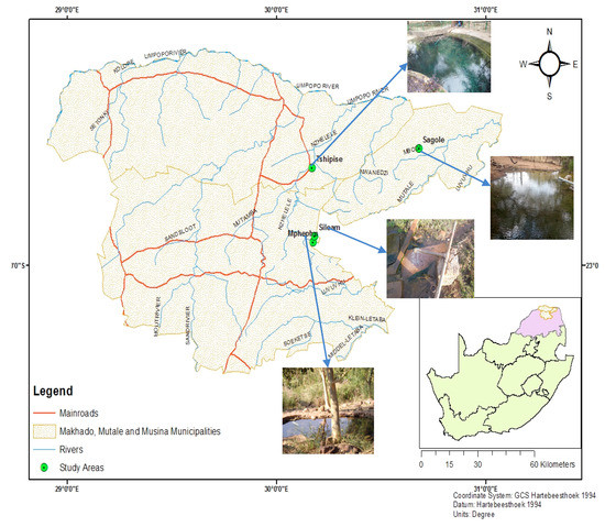 - Olivier, J.; Van Niekerk, H.; Van Der Walt, I. Physical and chemical characteristics of thermal springs in the Waterberg area in Limpopo Province, South Africa. Water SA 2019, 34, 163. [Google Scholar] [CrossRef]