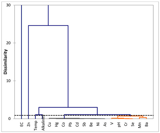 | Variables | Temp | pH | EC | Alk | Be | V | Cr | Mn | Co | Ni | Cu | Zn | As | Se | Cd | Sb | Ba | Hg | Pb |
