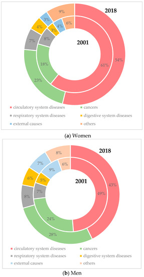 The beginning of the 1990s brought a new era of death rates in Slovakia. Its main feature was a more or less continuous reduction in the overall death rate and the prolongation of life [23]. There were a number of interacting factors which allowed the improvement of death rates and overall health condition of the Slovak population after 1989. First of all, it was the improvement in healthcare as a result of the growing volume of healthcare funding. Another positive impulse was opening the market, which brought the possibility to exchange experience; the access to the latest medical techniques, methods, and procedures; and also the availability of a variety of modern medications and equipment. However, in the following period, various trends in death rates were accompanied by re-widening differences. The main driving forces behind the positive developments in death rates in the western block were, in particular, the reduction of mortality from cardiovascular diseases and some forms of cancer, and also the prevention of illnesses associated with certain behavioral factors.