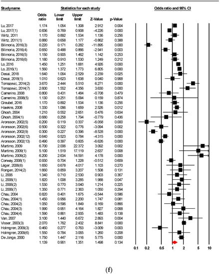 - Higgins, J.P.; Thompson, S.G. Quantifying heterogeneity in a meta-analysis. Stat. Med. 2002, 21, 1539–1558. [Google Scholar] [CrossRef] [PubMed]