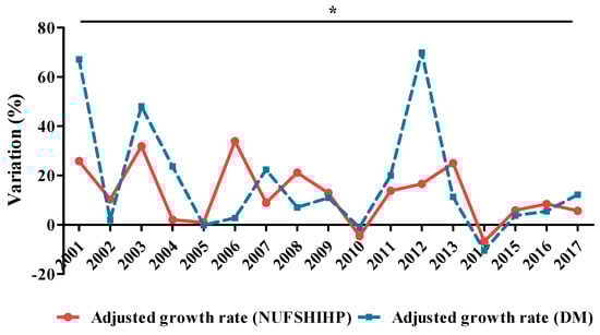 Figure 2 presents the evolution of the adjusted growth rate of NUFSHI HP and DM.
