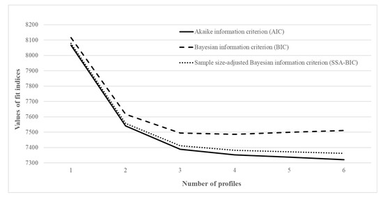 Latent profile analysis techniques were applied to explore the optimal number of profiles based on those 6 perceived difficulties perceived by parents for engaging in PA. These profiles’ or subgroups’ membership is mutually exclusive with each participant who was assigned to one particular subgroup only. A given subgroup shared similarities on the study variables (i.e., PA barriers in the current study). This approach allows iterative processes to identify the best model with an optimal number of subgroup of respondents based on a number of fit indices for comparison with different models so that the model selection is subject more to fit criteria than exploratory purpose. Mplus version 8.2 was used. Solutions from 1 to 6 profiles were estimated. The estimation started with one profile, and one additional profile was added at a time to identify the best fitting model. Five fit indices were examined to determine model fit, i.e., Akaike’s information criterion (AIC), Bayesian information criterion (BIC), the sample size-adjusted BIC (SSA-BIC), boot-strapped likelihood ratio test (BLRT), and the Lo–Mendell–Rubin likelihood ratio test (LMR). Smaller values of AIC, BIC, and SSA-BIC demonstrated a model with better fit. BLRT or LMR enabled a comparison between models with or without an additional profile, and a non-significant test in BLRT or LMR indicated a model with an additional profile was not superior to that of without an additional profile, so the model with fewer profiles should be chosen. The entropy values (ranged from 0 to 1) were reviewed in order to examine the classification accuracy. Higher entropy values indicated greater accuracy of a given model. In addition to fit indices, profile parsimony and interpretation, and theoretical implications were taken into account to reach an optimal solution.