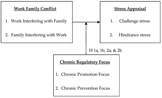 Research has noted that different appraisals of WFC can lead to specific attitudinal and behavioral responses to stress. Cavanaugh et al. [70] suggest that some view stress as manageable, allowing for personal growth, but others perceive stress as unmanageable and an obstacle to growth. Thus, they argued that not all stress is negatively appraised by individuals. Wallace and colleagues [71] emphasize that stress evaluation varies by the individual’s means of appraising stressors. We extend these arguments and suggest that some individuals consider WFC as challenge-type stress that enhances work–family balance or enrichment, leading to positive work outcomes (e.g., better performance). Others may view WFC as a hindrance-type stress that creates obstacles to personal well-being and leads to negative work consequences (e.g., lower performance) [41,72,73]. In this paper, we identified the individual’s chronic self-regulatory focus as a critical moderator determining the likelihood that they perceive WFC as challenge or hindrance stress.