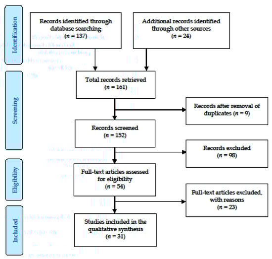 - Moher, D.; Liberati, A.; Tetzlaff, J.; Altman, D.G.; PRISMA Group. Preferred reporting items for systematic reviews and meta-analyses: The PRISMA statement. BMJ 2009, 339, 3–8. [Google Scholar] [CrossRef] [PubMed]