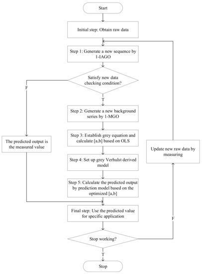 The flow chart of the derived grey Verhulst model is shown in Figure 3.