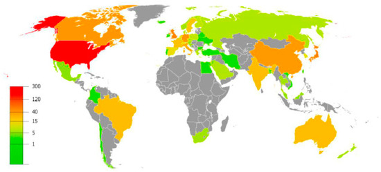 As shown in Table 4, among the top 20 most cited authors, five have received ≥1000 citations, six have been cited ≥500 times, and only two have not still been reached 100 citations. Overall, those authors who had the largest number of citations also had the highest h-index (i.e., h-index > 10).