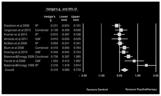 The meta-analysis result shows a higher level of functioning in the treatment group. This can challenge the impression that BPD psychotherapies may not impact patients’ functioning.