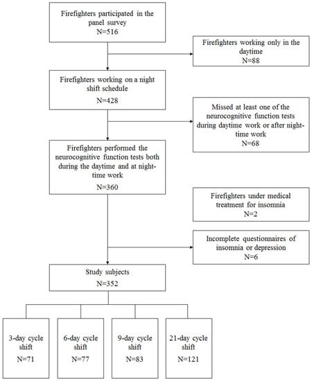 APA StyleKwak, K., Kim, B.-K., Jang, T.-W., Sim, C. S., Ahn, Y.-S., Choi, K.-S., & Jeong, K. S. (2020). Association between Shift Work and Neurocognitive Function among Firefighters in South Korea: A Prospective before–after Study. International Journal of Environmental Research and Public Health, 17(13), 4647. https://doi.org/10.3390/ijerph17134647