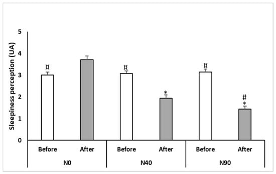 There were no significant differences in sleep the night before each of the three experimental conditions (i.e., 566 min in N0, 515.4 min in N40 and 525.8 min in N90). Furthermore, each night’s sleep duration represented sleep quantity (i.e., 8–9 h) consistent with the 7–9 h sleep recommendations [