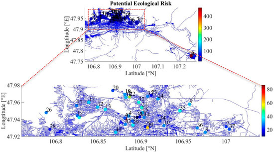 As described in Section 3.5, the potential ecological risk caused by heavy metals was estimated by Hakason’s model. In this section, the results of each parameter included in the ecological risk assessment will be described.