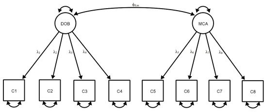 - Joreskog, K.G. A general approach to confirmatory maximum likelihood factor analysis. Psychometrika 1969, 34, 183–202. [Google Scholar] [CrossRef]