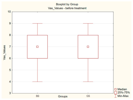For statistical analysis, the software SPSS (IBM) v.26 was used. A p-value of less than 0.05 was deemed as statistically significant. Significant statistical differences between SG and CG groups were determined by Mann–Whitney test. Non-parametric methods were used, where normality assumptions were violated with regard to variables’ distributions (the Shapiro—Wilk test was calculated beforehand for checking distributional adequacy).