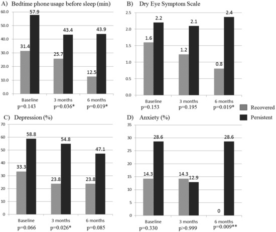 | Recovered Group (n = 21) | Persistent Group (n = 35) | p | |