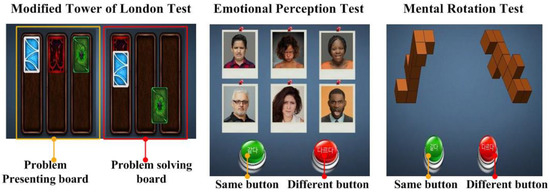 Neurocognitive functions in all participants were assessed using a modified Tower of London test (CNT-MBI®, Seoul, Korea), the Emotional Perception test, and the Mental Rotation test.