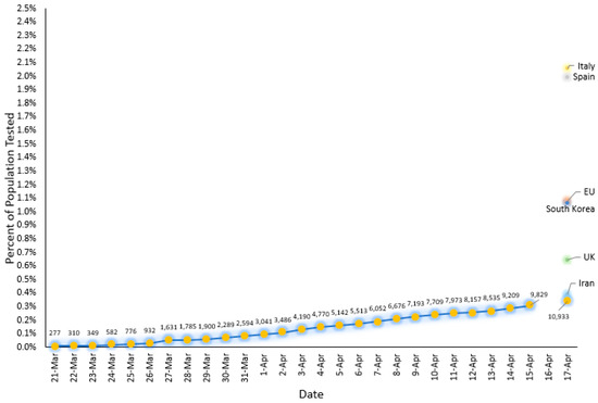 - Hassell, J.; Mathieu, E.; Beltekian, D.; Macdonald, B.; Giattino, C.; Ortiz-Ospina, E.; Ritchie, H.; Roser, M. Statistics and Research—Coronavirus (COVID-19) Testing. Available online: https://ourworldindata.org/covid-testing (accessed on 16 May 2020).