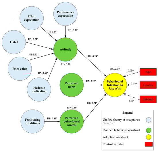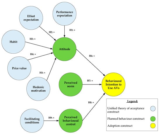 - Acheampong, R.A.; Cugurullo, F. Capturing the behavioural determinants behind the adoption of autonomous vehicles: Conceptual frameworks and measurement models to predict public transport, sharing and ownership trends of self-driving cars. Transp. Res. Part F Traffic Psychol. Behav. 2019, 62, 349–375. [Google Scholar] [CrossRef]