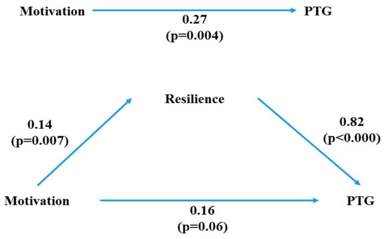 3.3. Mediating Effects of Resilience on Academic Motivation and Post-Traumatic Growth