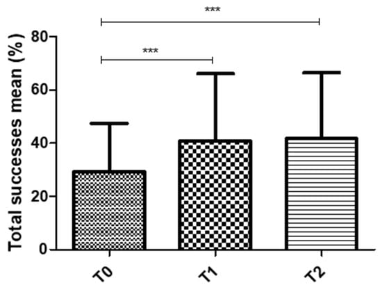Representation of the composite success (mean of both ears) for overall participants obtained at T0, T1 and T2. *** p < 0.001.