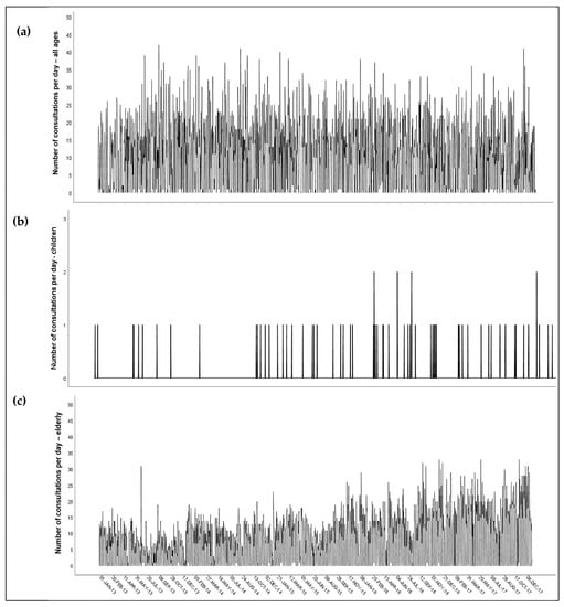 | Daily number of consultations due to diabetes mellitus: all age groups, children, elderly | ||||||||