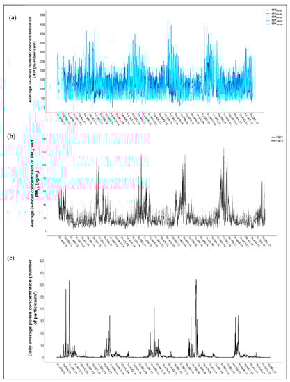| Average 24-h concentration of PM10 and PM2.5 (µg/m3) | ||||||||