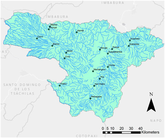 Map of the sample collection points for the 18 rivers (see Supplementary Table S1) from Pichincha province in the present study.