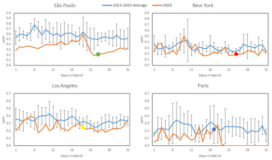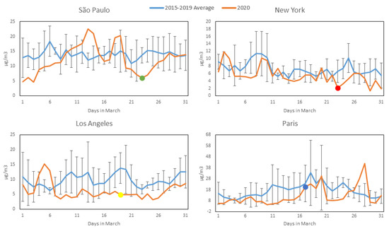 Connerton P, Vicente de Assunção J, Maura de Miranda R, Dorothée Slovic A, José Pérez-Martínez P, Ribeiro H. Air Quality during COVID-19 in Four Megacities: Lessons and Challenges for Public Health. International Journal of Environmental Research and Public Health. 2020; 17(14):5067. https://doi.org/10.3390/ijerph17145067