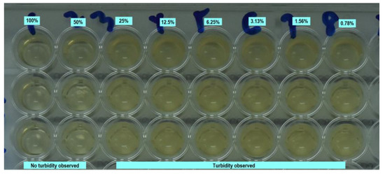 Observation of Enterococcus faecalis growth in a 96-well plate at different concentrations of M-EE fermented for 3 months.