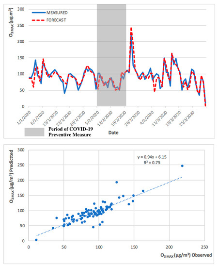 Observed and predicted O3 MAX concentrations for Taipa Ambient during preventive measures of COVID-19 pandemic (from January to March 2020).