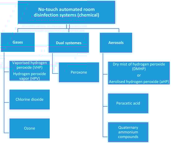- Otter, J.A.; Yezli, S.; Perl, T.M.; Barbut, F.; French, G.L. The role of “no-touch” automated room disinfection systems in infection prevention and control. J. Hosp. Infect. 2013, 83, 1–13. [Google Scholar] [CrossRef]