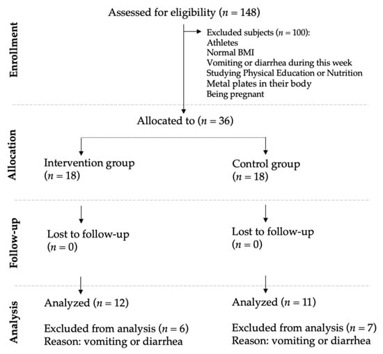 Chicago/Turabian StyleHernández-Jaña, Sam, Tamara Huber-Pérez, Ximena Palma-Leal, Paola Guerrero-Ibacache, Valentina Campos-Nuñez, Juan Pablo Zavala-Crichton, Carlos Jorquera-Aguilera, Kabir P. Sadarangani, Fernando Rodríguez-Rodríguez, and Carlos Cristi-Montero. 2020. "Effect of a Single Nutritional Intervention Previous to a Critical Period of Fat Gain in University Students with Overweight and Obesity: A Randomized Controlled Trial" International Journal of Environmental Research and Public Health 17, no. 14: 5149. https://doi.org/10.3390/ijerph17145149