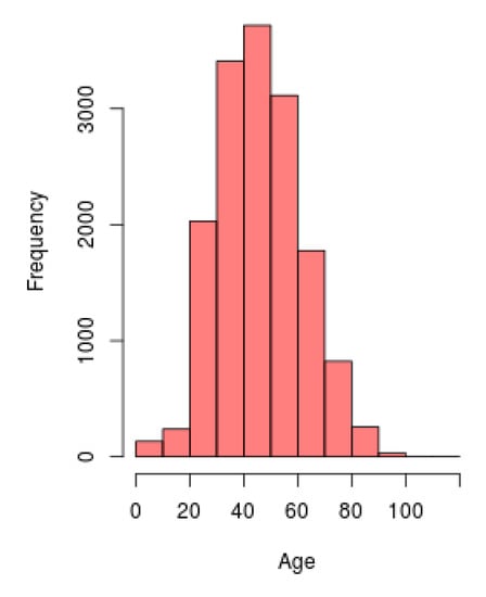 Therefore, for the visualization and analysis of the different demographic features concerning the Mexican population in relation to COVID-19, histograms are constructed. This tool allows to do a risk assessment and diagnosis through the acquisition of an overview of the current situation in relation to this disease (based on the update given by the federal government of Mexico), making it possible to apply filters to the information shown in the histogram. These filters allow to make a selection in the demographics of the population that want to be taken into account for the construction of the histogram. The demographic options that can be chosen concern sex and territorial region [].