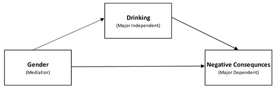 The first objective of this study is to determine if gender was statistically significantly correlated with drinking and subsequent negative consequences and where gender ranks among all the possible respondent characteristic variables by effect size (R2). Numerous prior studies provide evidence that underlying social, health, economic and other background characteristics are associated with alcohol-related negative consequences both directly and indirectly through their effects on drinking levels [4,53].