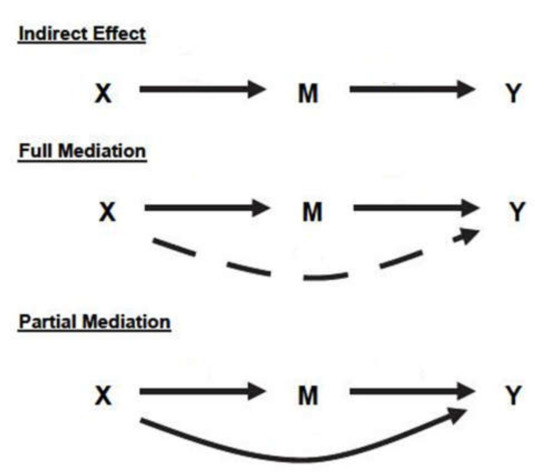The following Equations (1)–(4) show statistical regression modeling between the research variables: