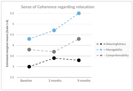 Indicators for SOC (i.e., manageability, comprehensibility, and meaningfulness) regarding the implementation of ABWs showed significant effects over time and increases after relocation (RM-ANOVA, all p < 0.001, see Table 1 and Figure 2).