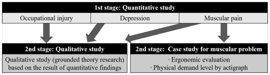 A qualitative study was conducted to obtain more detailed information on IWCs’ depression and occupational and musculoskeletal injuries. The approach was based on a sequential explanatory mixed methods design, as proposed by Creswell and Plano-Clark [9].