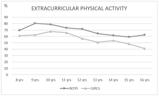 Romero-Blanco, C.; Dorado-Suárez, A.; Jiménez-Zazo, F.; Castro-Lemus, N.; Aznar, S. School and Family Environment is Positively Associated with Extracurricular Physical Activity Practice among 8 to 16 Years Old School Boys and Girls. Int. J. Environ. Res. Public Health 2020, 17, 5371. https://doi.org/10.3390/ijerph17155371
