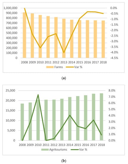 - ISTAT. Le Aziende Agrituristiche in Italia. Anno 2018, Statistiche Report. 2019. Available online: https://www.istat.it/it/files//2019/11/Report_agriturismi_2018.pdf (accessed on 9 June 2020).