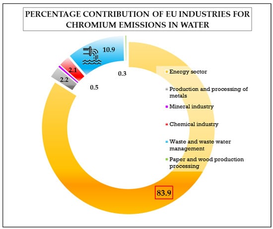 Percentage of Cr emission in EU waters per industrial sector. Data released by the European Environmental Agency are related to the year 2017 (data source: [44]).