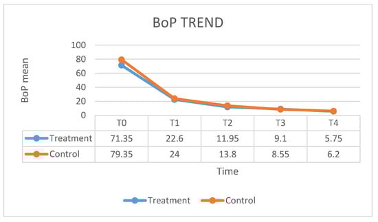 These indices represent a numerical value describing the periodontal status of the population. PI assumes a progression of gingivitis to pocket formation leading to advanced destruction. PDD and CAL are qualitative and quantitative criteria and a gingival and a periodontal component. BOP indicates inflammatory changes. All periodontal clinical examinations were collected at baseline and after 3, 6, 9 and 12 months by the same calibrated examiner.