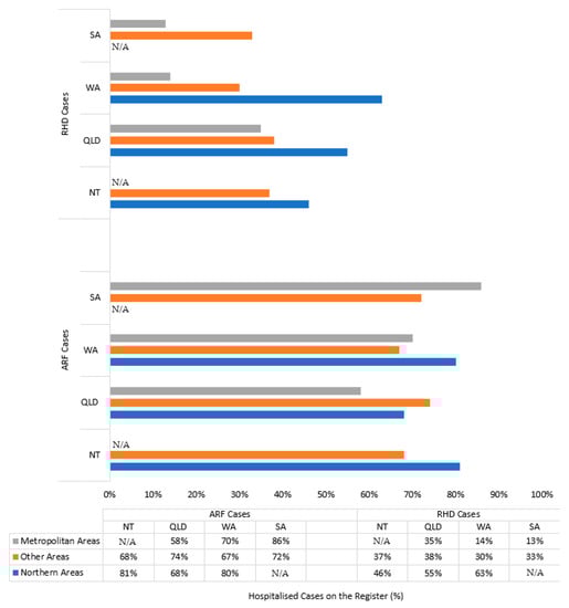 However, notification requirements can be complemented by other policies to increase case ascertainment. Outside of the NT, QLD had the highest proportion of hospitalised RHD cases recorded on its ARF/RHD register compared to the other jurisdictions despite RHD becoming notifiable outside of our research study period for this jurisdiction (2018). This may be related to comprehensive active case finding work in QLD that commenced in 2014 and identified 500 ARF/RHD cases previously unknown to the register [], highlighting the importance of this approach to case ascertainment as part of control programs.